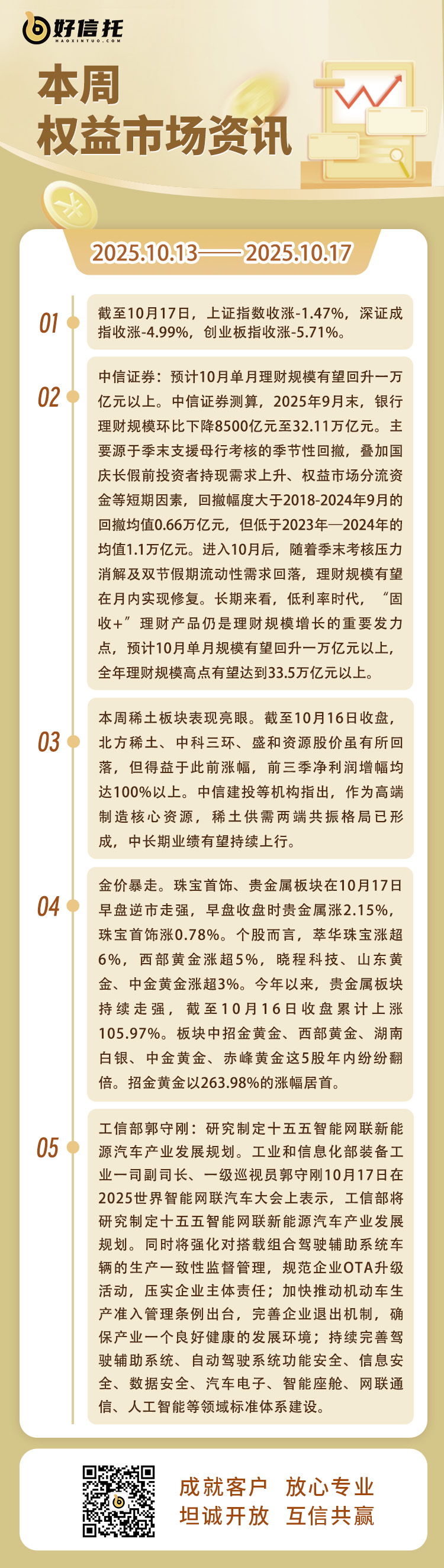 每周市场信息汇总(10月13日至10月17日)