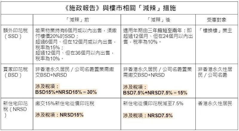 1.下调置房印花税。以往,香港永久居民买房,首置税最高是4.25%,而买第二套及以后房产的住宅印花税均为15%。非永久居民买房要交两种税,买家印花税15%+新住宅印花税15%,共计30%。